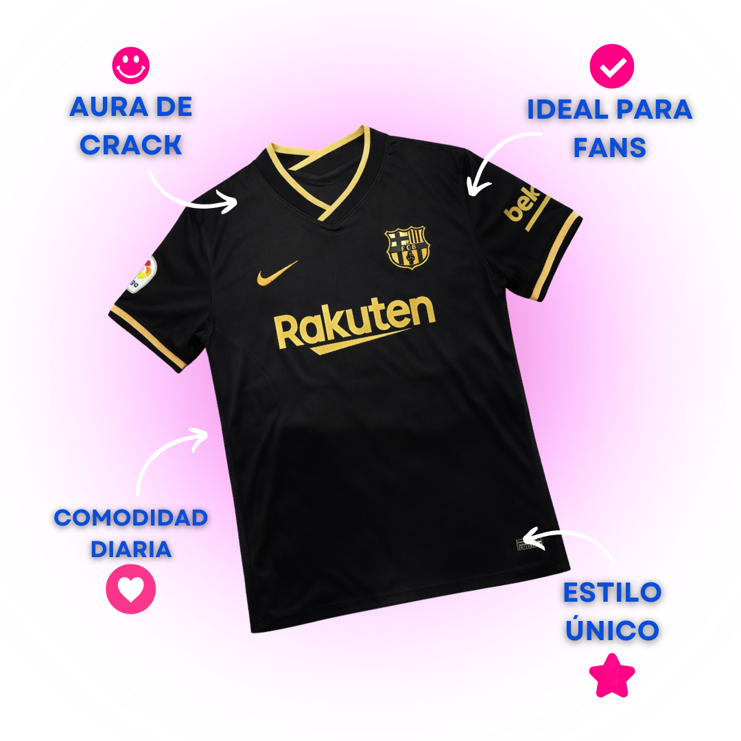 Jersey de fútbol del FC Barcelona para la temporada 2020-2021, con Lionel Messi en su última temporada con el equipo. Celebra el legado del legendario jugador argentino con este jersey oficial del club. Diseñado con los colores característicos y el escudo histórico del Barcelona, este jersey es un tributo al inigualable talento y la extraordinaria carrera de Messi en el club blaugrana.