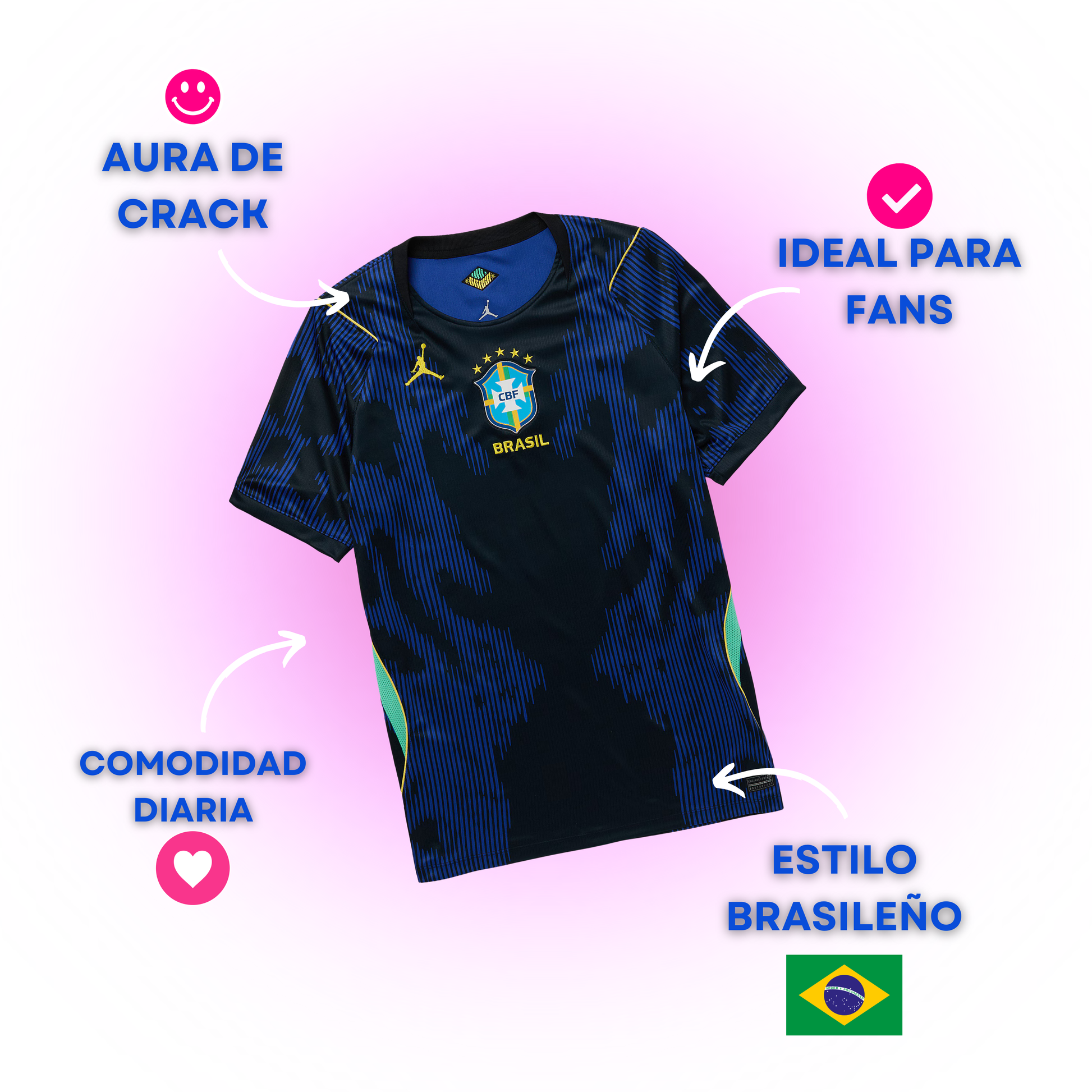 El Jersey Brasil Visita Mundial 2026 Jordan “Joga Siniestro” Versión Jugador es una de las camisetas más especiales de la nueva generación de uniformes de la selección brasileña. Esta edición fusiona la tradición del fútbol brasileño con la estética urbana de Jordan Brand, creando un diseño atrevido que conecta el fútbol con la cultura street y el estilo global.