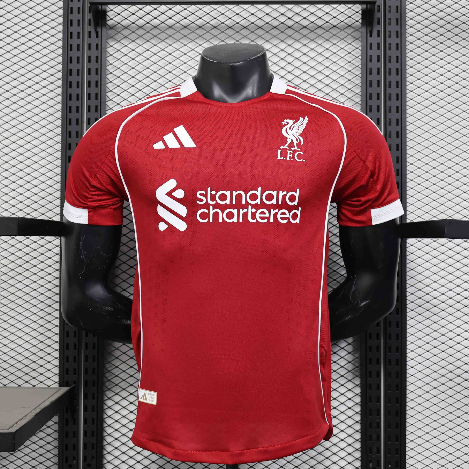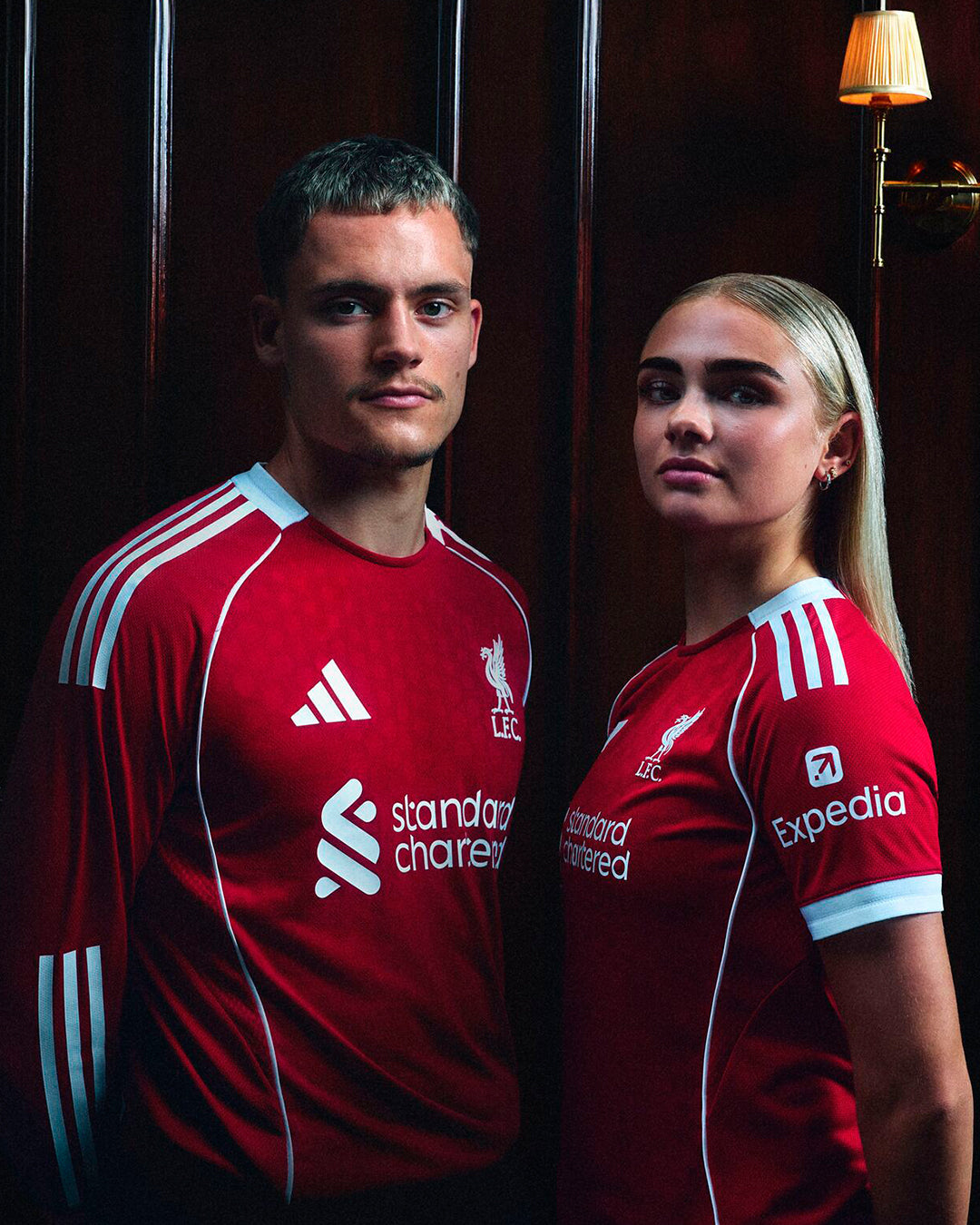 La nueva camiseta local marca el regreso de Liverpool a Adidas después de 13 años, y recupera una estética atemporal inspirada en la gloriosa era de mediados de los 2000 . El diseño presenta un rojo oscuro estilo strawberry red con ribetes blancos en cuello y mangas, y las icónicas tres franjas Adidas en hombros y puños, evocando el modelo usado por leyendas como Gerrard y Alonso. Con tecnología AEROREADY, garantiza rendimiento, frescura y confort en cada vistazo
