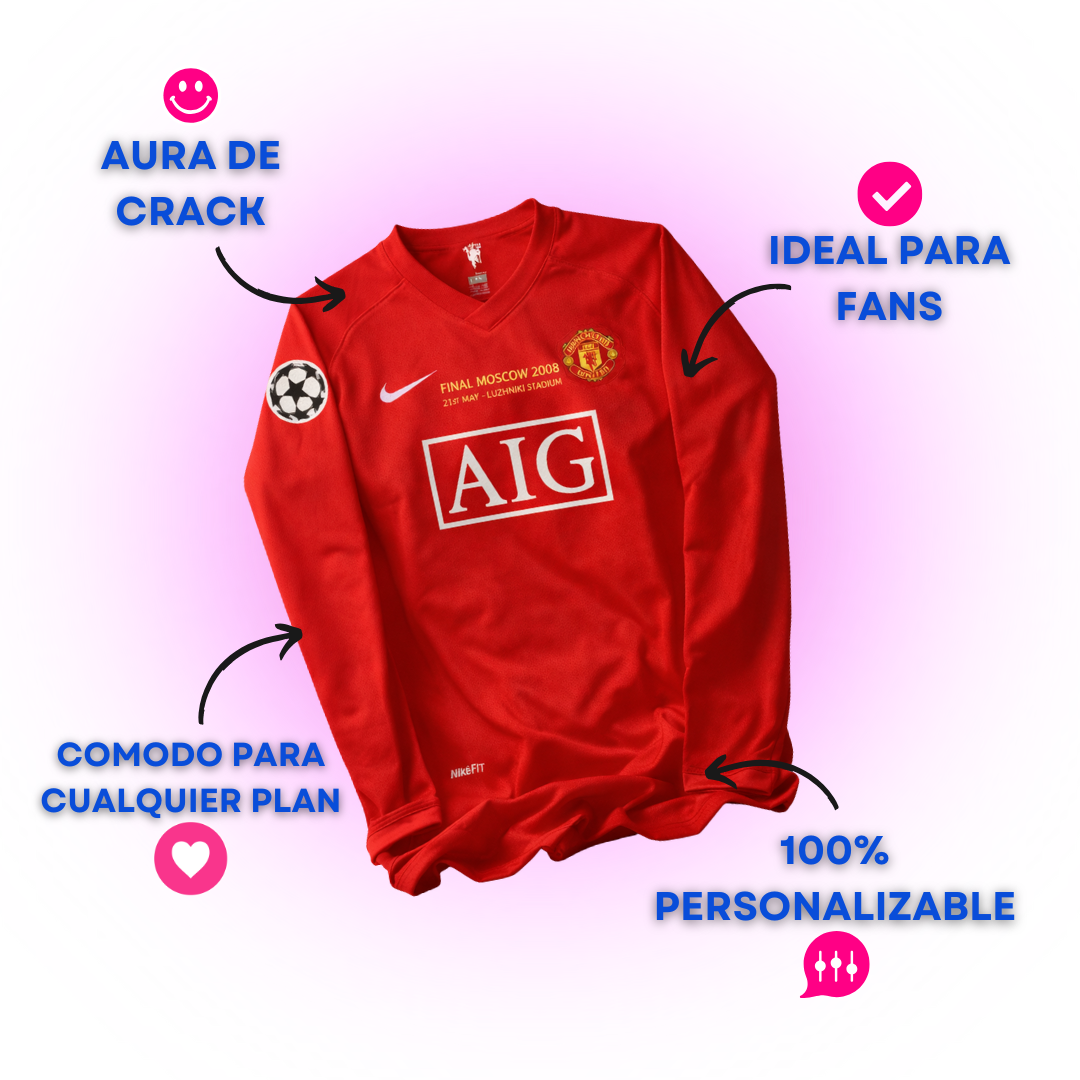 Jersey de fútbol del Manchester United para la temporada 07-08. Celebra la memorable victoria en la Champions League, donde Cristiano Ronaldo dejó su marca imborrable. Luce con orgullo los colores distintivos del equipo.