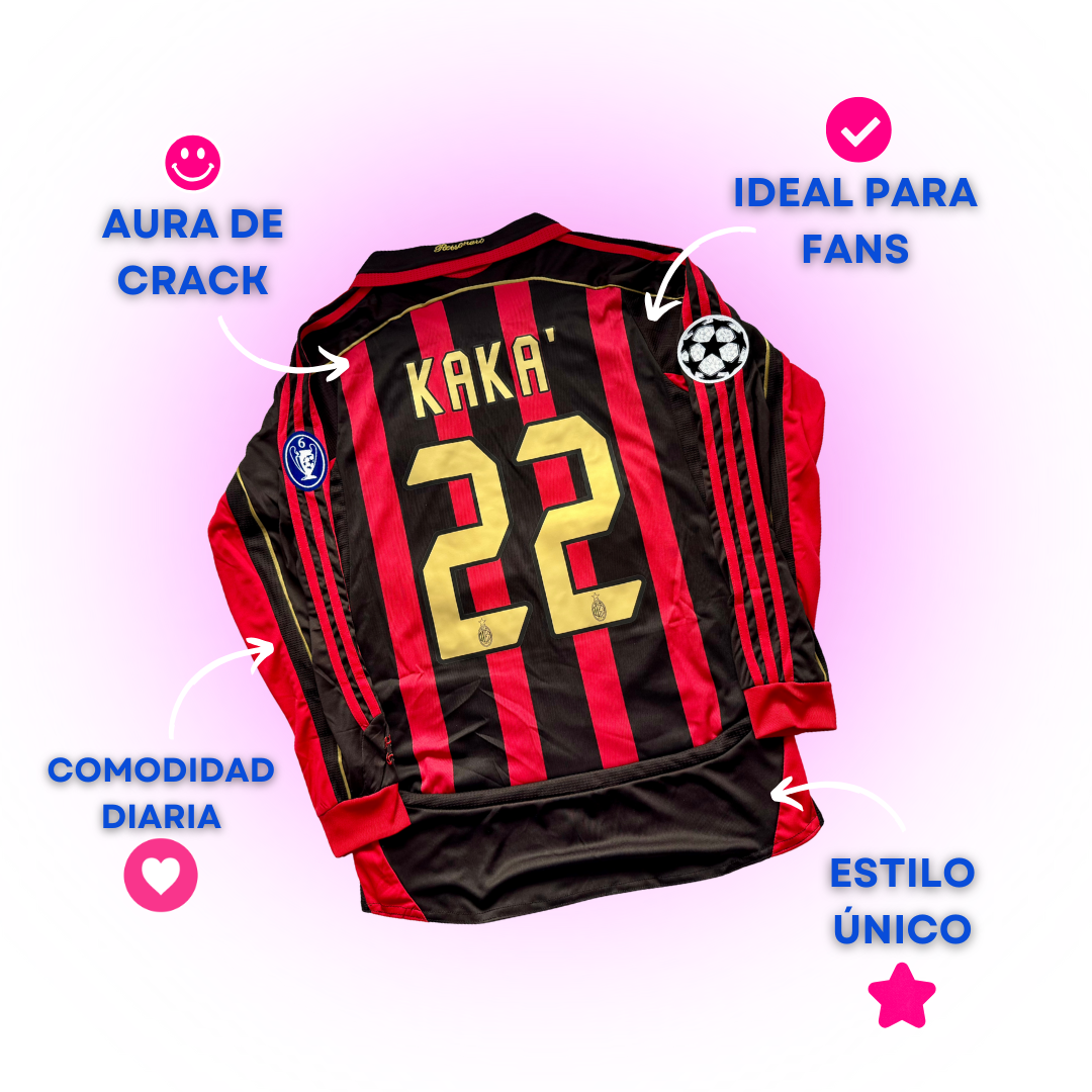 Jersey de fútbol del AC Milan para la temporada 06-07. Conmemora la destacada actuación en la Champions League, donde Kaka brilló con su talento único. Luce con orgullo los colores rossoneri.